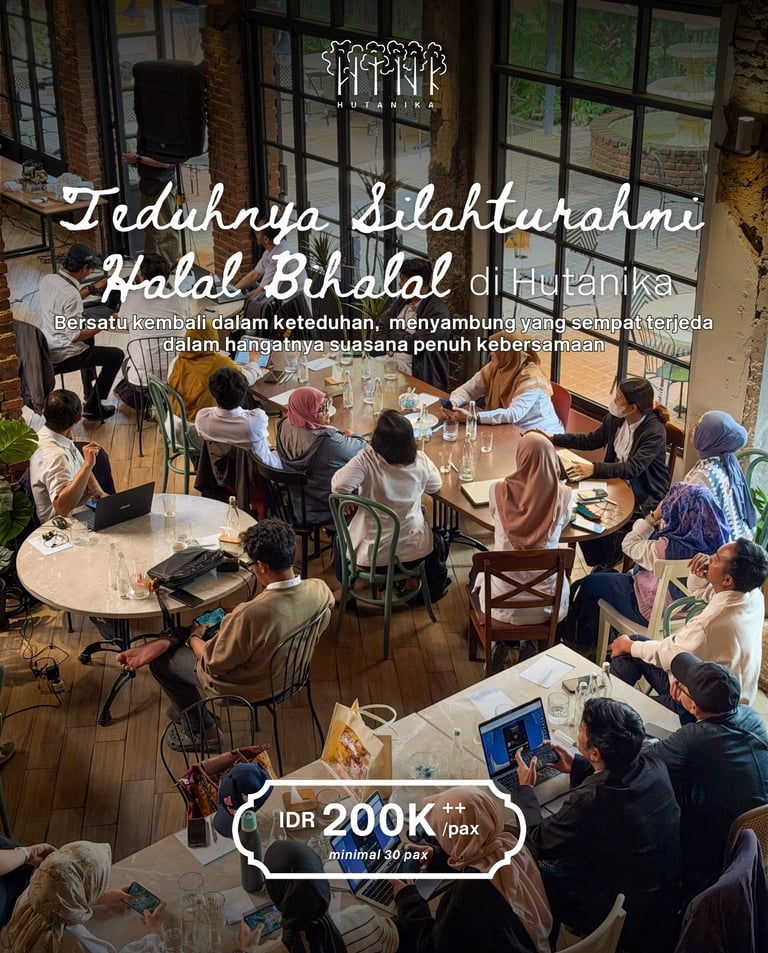Ruang hijau di tengah kota Bandung untuk jeda sejenak dari hiruk-pikuk kota. Hutanika merupakan tempat dimana kuliner, aktivitas, dan gaya hidup bertemu.