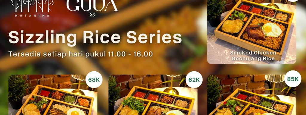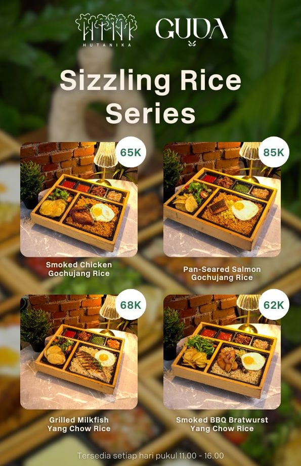 Sizzling Rice Series dari Hutanika hadir dengan nasi hangat lengkap dengan aneka lauk lezat, sambal pilihan, dan pelengkap yang bikin tiap suapan makin istimewa. Mulai dari telur setengah matang yang lumer sampai sayuran segar, semuanya siap memanjakan lidah #KawanHutanika.